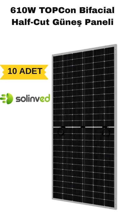 610W TOPCon Bifacial Half-Cut Güneş Paneli | Yüksek Verimli Solar Panel 10 ADET