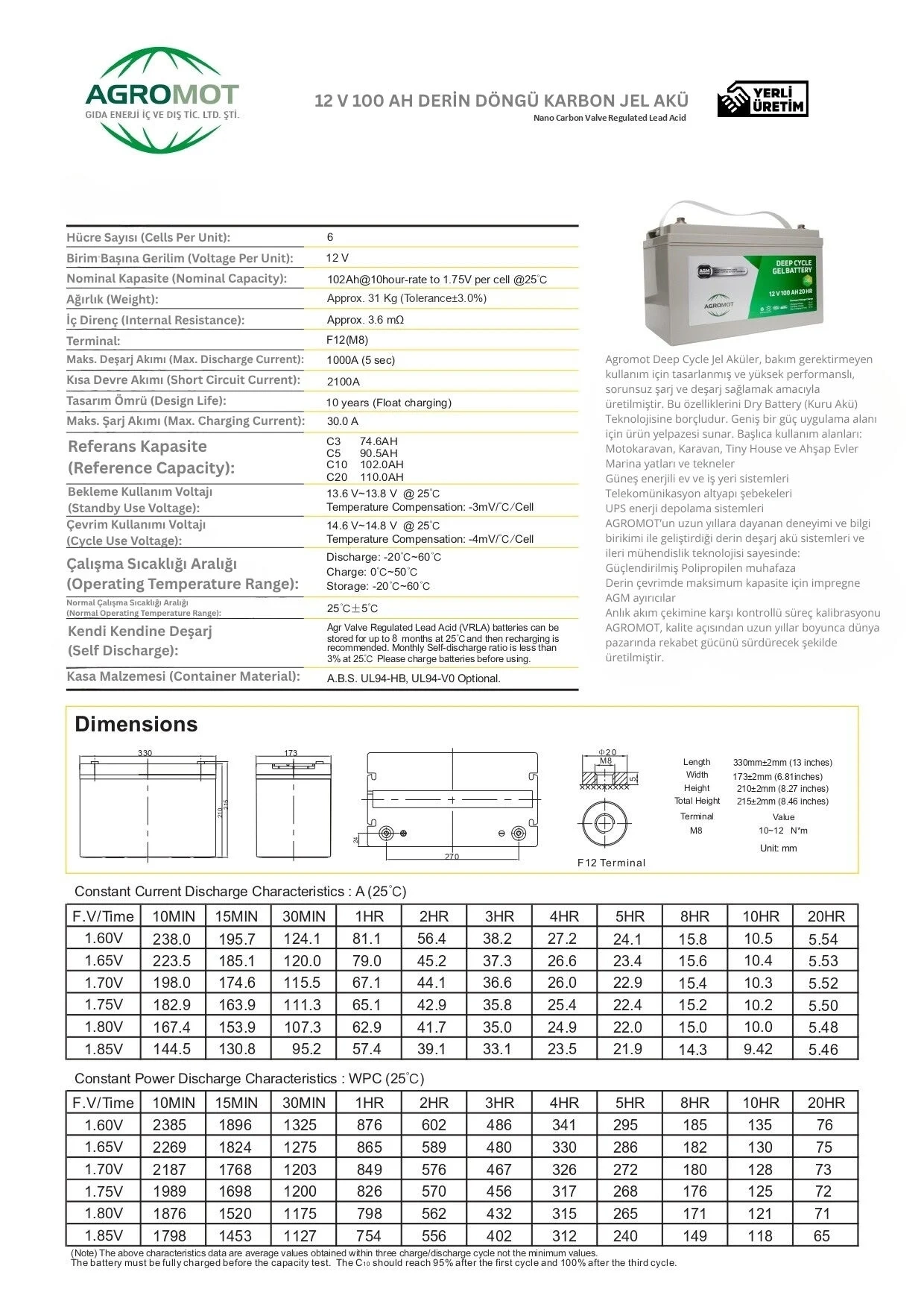 - Akü Türü: Jel – Deep Cycle (Nano Carbon)