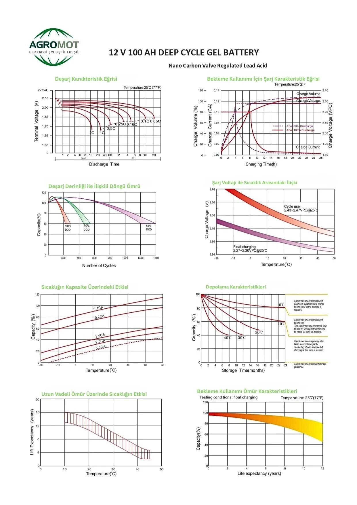 Agromot 12V 100Ah Jel Akü – Nano Karbon Deep Cycle
