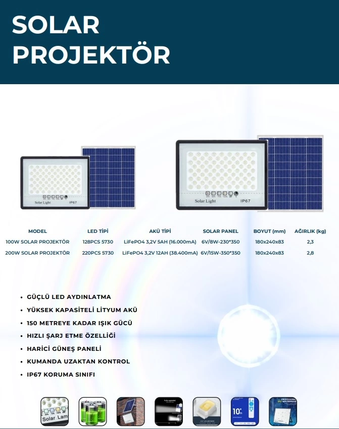 (Not: 200W model LED sayısı ve batarya kapasitesi seriye göre küçük değişiklik gösterebilir, ancak Lexron standartları yukarıdaki değerlerle aynıdır.)