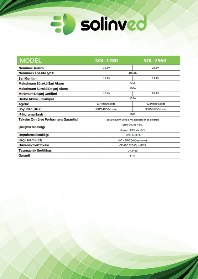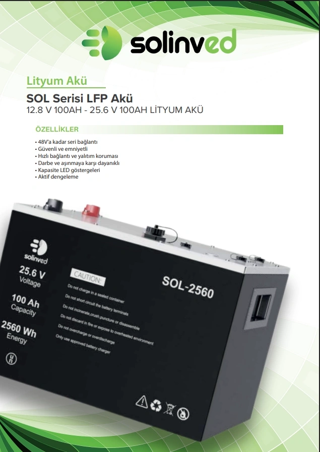 Solinved 25,6V 100Ah Lityum Akü