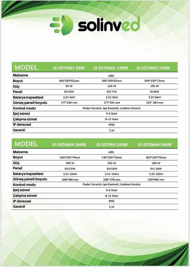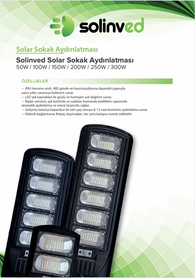 Solinved 300W Solar Aydınlatma – Ekonomik, Dayanıklı ve Yüksek Verimli Solar Dış Mekân Işığı