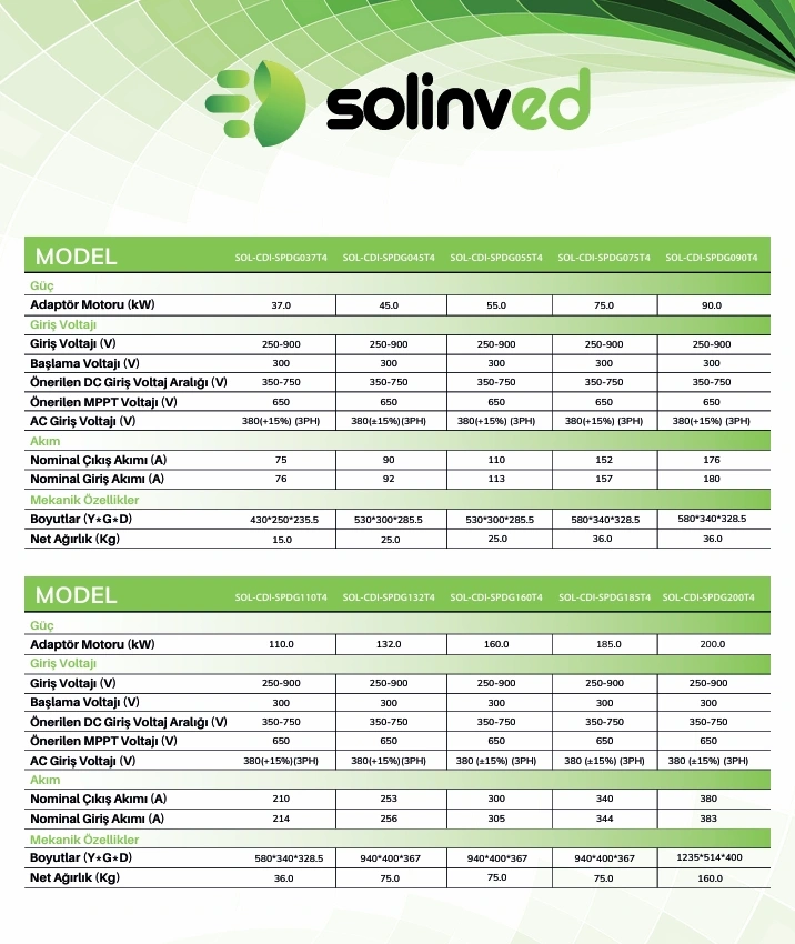 Solinved 110kW 150HP Trifaze Solar Sürücüsü