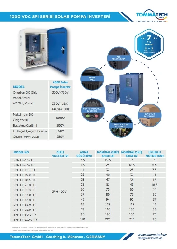 TommaTech 7.5kW 1000V Solar Pompa İnverter