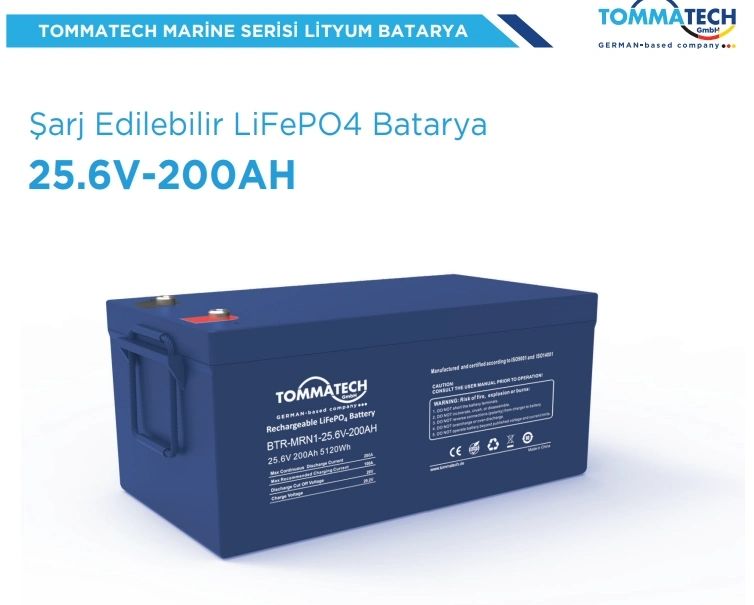 Tommatech Marine ABS Kasa Batarya 12.8V 200AH LFP Lityum Batarya