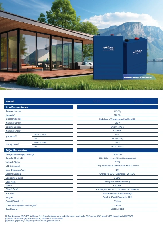 TommaTech PB Serisi 51.2V 100Ah LFP Lityum Batarya