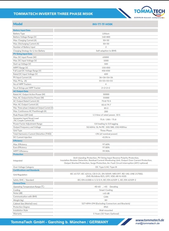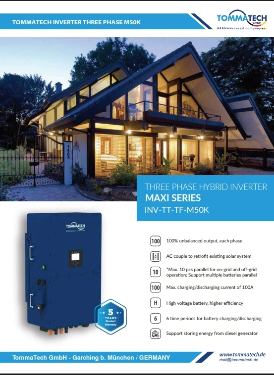 TommaTech Trio-Hybrid Maxi Serisi 50kW Trifaze Hibrit İnverter
