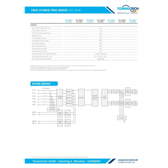 TommaTech Trio Hybrid 10kW Üç Faz Hibrit İnverter