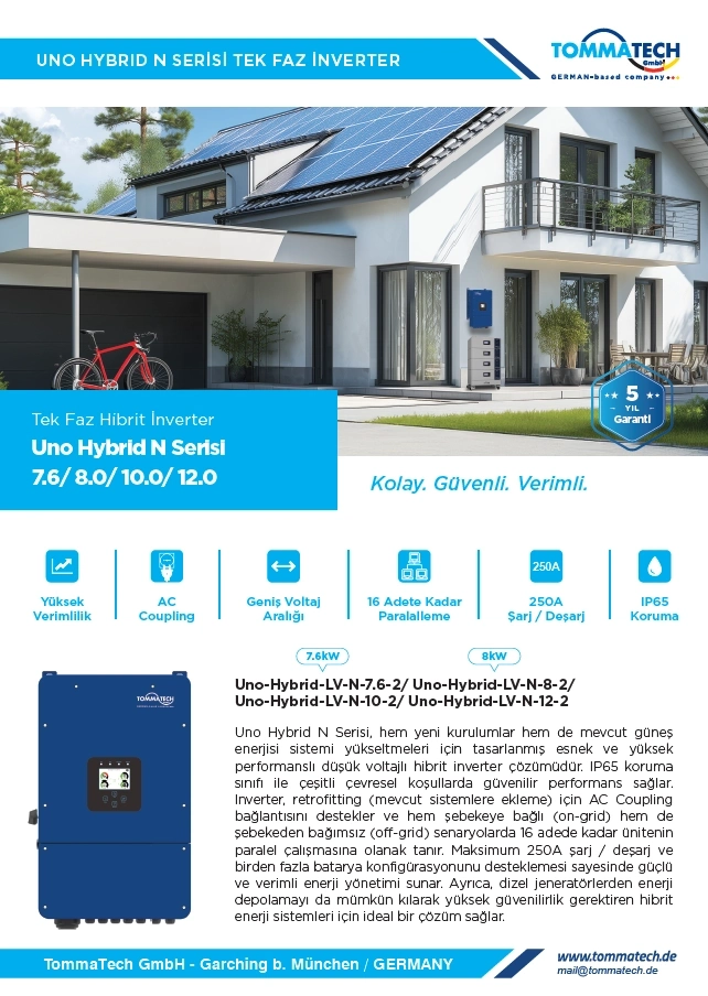 TommaTech Uno Hybrid N 12.0 kW Tek Faz Hibrit İnverter