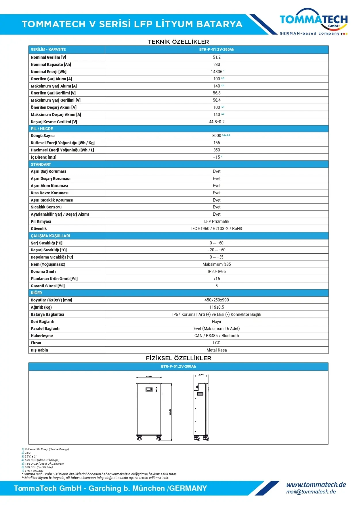 TommaTech Modüler V Serisi 51.2V 280Ah LFP Lityum Batarya