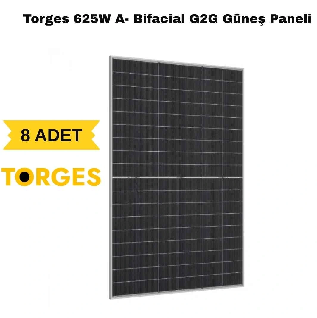 Torges 625W A-Class Bifacial TOPCon Monokristal Half-Cut Güneş Paneli – 8’li Paket